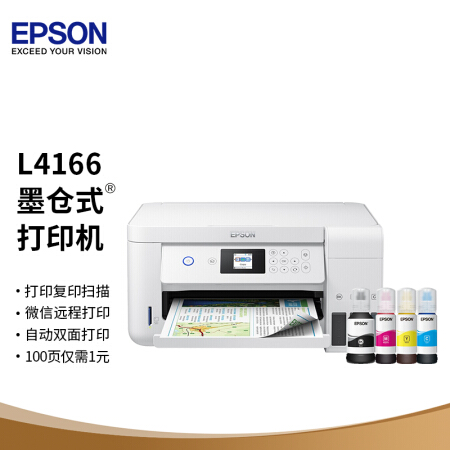 愛普生(EPSON)墨倉式品質(zhì)款L4166(優(yōu)雅白) 微信打印/無線連接 打印復(fù)印掃描一體機