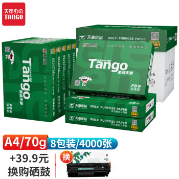 天章 TANGO 新綠天章70gA4打印紙 復(fù)印紙 中高品質(zhì)款打印紙 500張/包 8包/箱 4000張