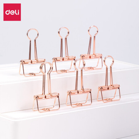 得力 deli 6只32mm玫瑰金鏤空票夾長尾夾 辦公票夾時尚燕尾夾