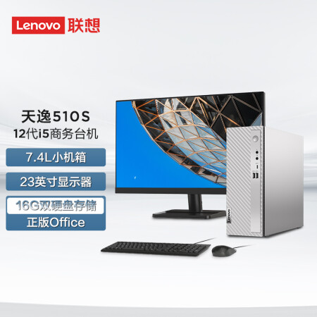 聯(lián)想 Lenovo 天逸510S英特爾酷睿i5個人商務(wù)臺式機電腦整機 12代i5-12400 16G 1T+256G SSDwifi win11 23英寸